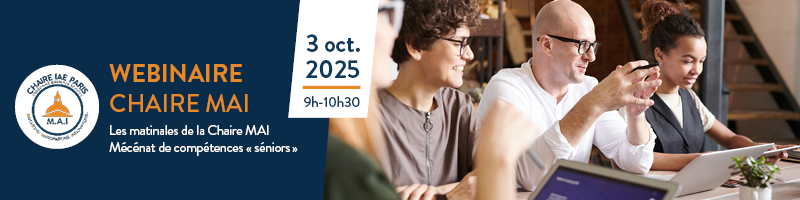 Pour vous inscrire au Webinaire de la Chaire Mutations Anticipations Innovations (MAI) sur le thème :"Mécénat de compétences « séniors »",nous vous remercions de remplir le formulaire ci-dessous.