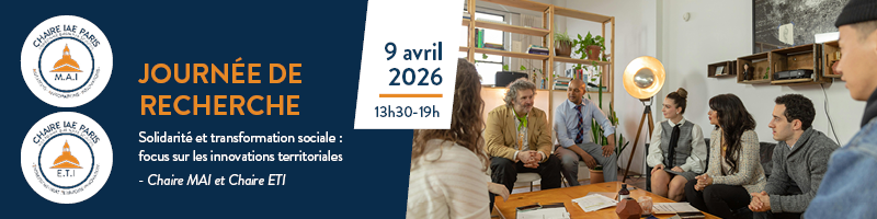 Pour vous inscrire à la journée de recherche sur le thème :Solidarité et transformation sociale : focus sur les innovations territorialesorganisée par l'IAE Paris-sorbonne, IFM, INJEP et l'institut pour la recherche, nous vous remercions de remplir le formulaire ci-dessous.